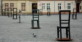 tall, metal, dotted around. There were other smaller chairs around the square. When the Jews were first